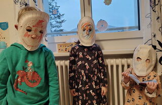 Natürlich durfte der Fasnachtsumzug nicht fehlen. An diesen gingen wir mit der Chinderstube zusammen als Bauarbeiter. Ansonsten durchlebten wir die Fasnachtswoche kunterbunt. Täglich durften sich die Kinder schminken und verkleiden.