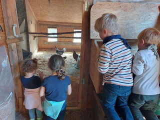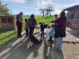 Die Bauernhoftiere durften nicht fehlen, welche dann in der dritten und letzten Woche thematisiert wurden. Laut den Kindern war der beste Tag in dieser Woche der Ausflug nach Uerkheim. Dort haben wir den Könighof besucht. Den Morgen verbrachten wir damit, die Tiere kennenzulernen, zu füttern und zu streicheln. Nadja und Franz Rothenbühler, die Besitzer des Bauernhofes, haben sich sehr viel Zeit genommen, um den Kindern alle Fragen zu beantworten. Herzlichen Dank noch einmal dafür!