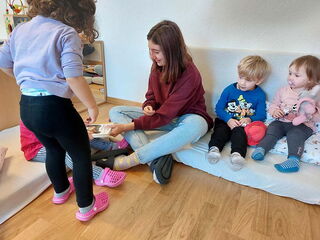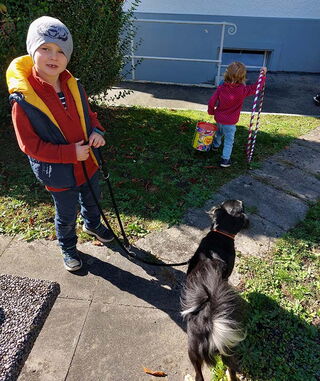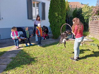 Dieses Jahr sind wir mit dem Thema "Tiere" in die Herbstferien gestartet. In der ersten Woche ging alles rund um die Haustiere. Die Kinder durften erzählen und aufzeichnen, welche Haustiere sie kennen oder sogar selbst haben. Nebst unterschiedlichen Haustieren, Geschichten und Kreativ-Angeboten war das Highlight der Kinder der Ausflug nach Niedergösgen, wo wir Noemi besuchten. Nya, der Hund von Noemi, hat sich über den Spaziergang und das Spielen auf dem Spielplatz ebenfalls sehr gefreut.